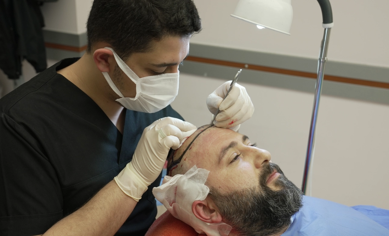 A linear strip is harvested to maximize graft yield—ideal for extensive baldness—performed with careful closure for discreet scarring.
