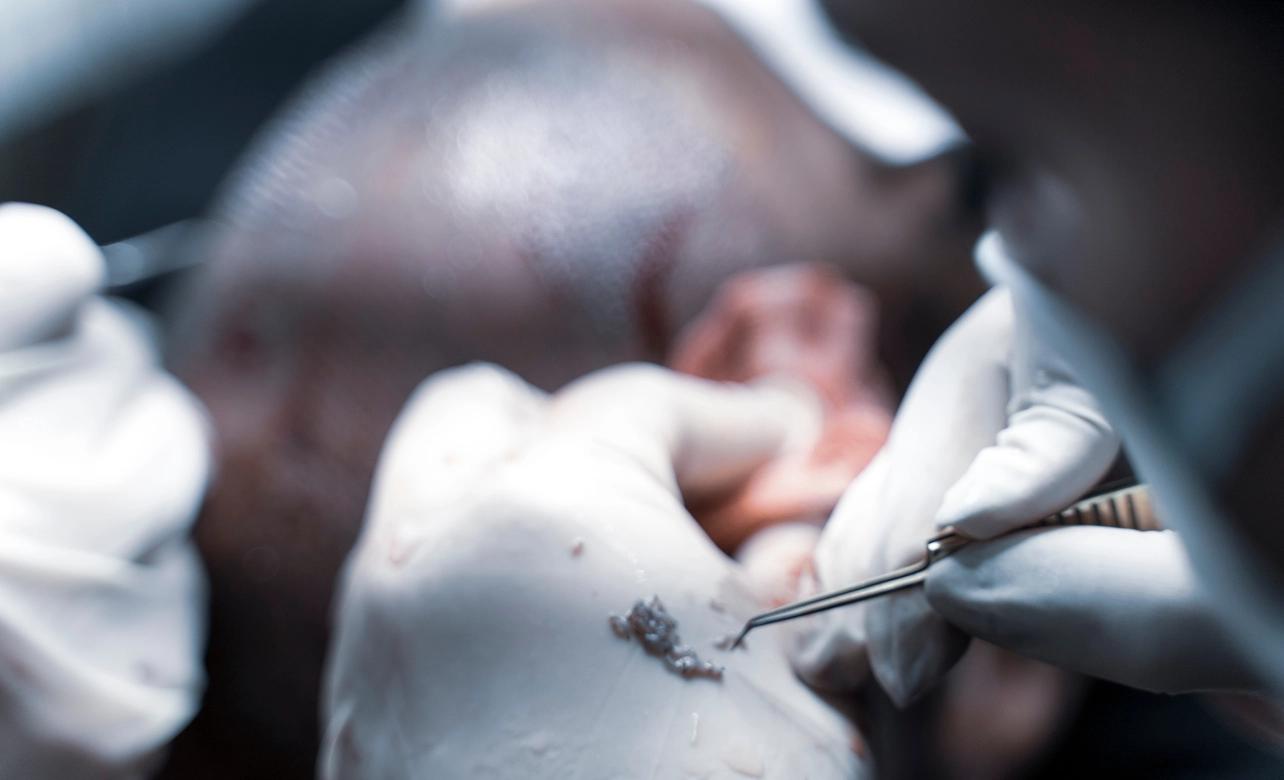 Transplantation to cheeks, jawline, and mustache for fuller growth and defined facial aesthetics.